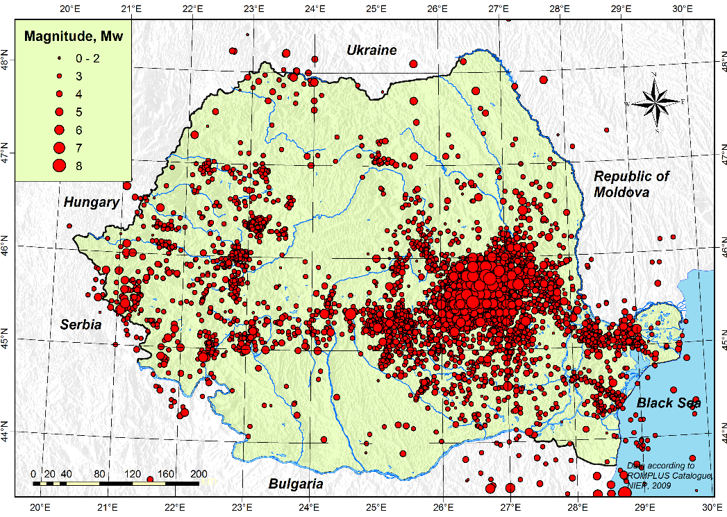 Harta seismicităţii României* * Date conform catalogului ROMPLUS (INFP)