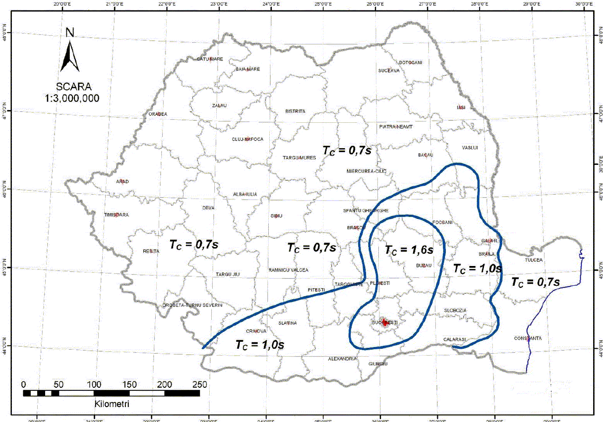 România – Zonarea teritoriului în termeni de perioadă de control (colţ), TC, a spectrului de răspuns, conform “Codului de proiectare seismică – Partea I – Prevederi de proiectare pentru clădiri”, indicativ P 100-1/2013.